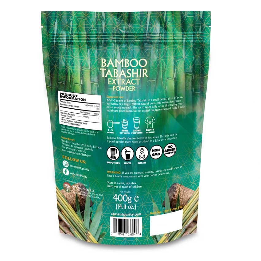 NOTE: First mix Bamboo Tabashir Extract into a little bit of hot water as it will dissolve better. Next, you can add it to juices or smoothies.
