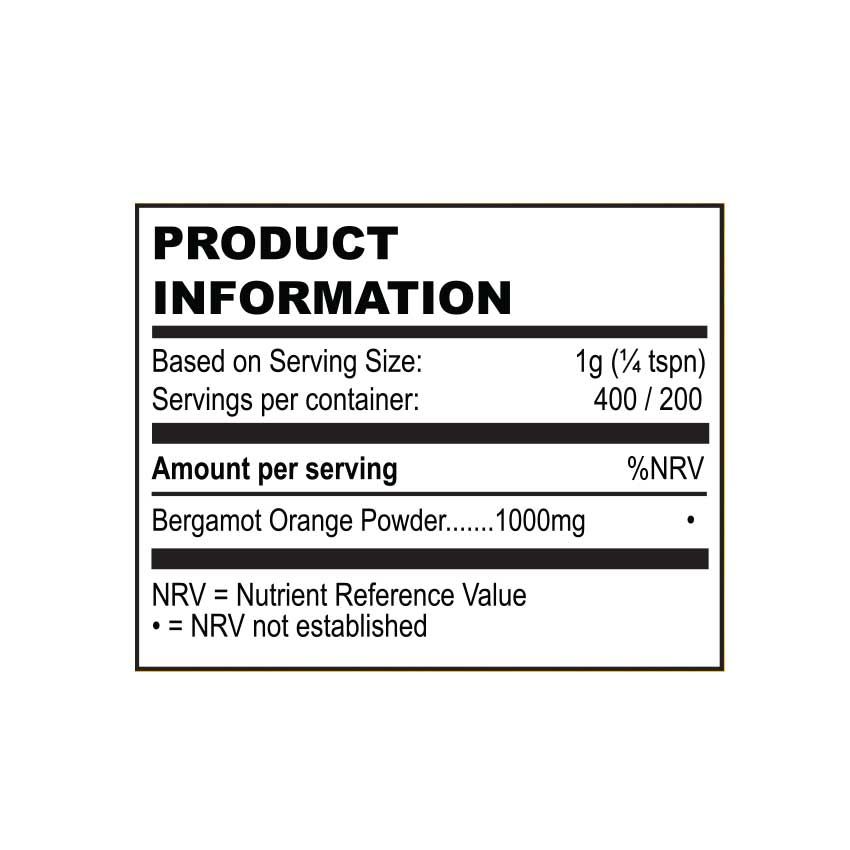 A: The suggested dose of Bergamot is 500–1,000 mg of a standardised extract, taken once or twice a day 20–30 minutes before meals. For maximum benefits, take Bergamot Orange Powder twice a day for 60–90 days, reevaluate your lipid levels, and adjust your dose accordingly.