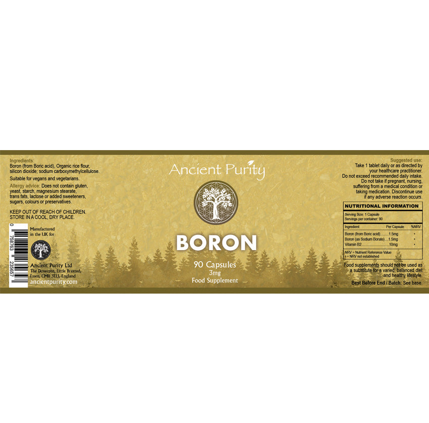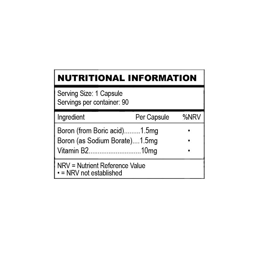 Created from from Sodium Borate and Boric acid, with Vitamin B2 this is a Clean, Safe and Effective Supplement. Boron is a trace mineral that can be found in certain foods as well as in our environment, it plays several important roles in the body. Boron is present both in the diet and within the human body in trace amounts. This trace mineral affects calcium, magnesium and phosphorus metabolism. Boron is especially important for those on a vegan diet. One of the most researched Boron uses is its ability to increase/balance Oestrogen levels in both healthy women and men, which is one reason it’s linked to healthy bones and fewer signs of age-related issues like cognitive decline and joint, bone conditions. Similarly, it’s used by many athletes and bodybuilders because it’s believed to increase the body’s ability to produce and use Testosterone, so it’s beneficial for recovering from exercise, building muscle mass, and keeping bones strong. It could potentially benefit conditions such as hormonal imbalances, menopausal symptoms, and even support reproductive health in men. Boron is involved in the process of wound healing and tissue repair. It may help accelerate the healing of cuts, bruises, and other minor injuries. Increasing evidence from various experimental methods shows that Boron is a bio-active and beneficial element for people. According to research, people need a minimum of 1 mg of Boron daily for optimal health. Many people still do not get the required amount on a regular basis. We've stored the capsules in a Miron Glass Jar for maximum freshness.