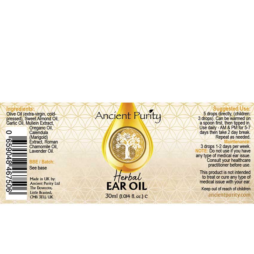 An ancient formula, upgraded with bio-hack discoveries to help gently and naturally unblock ears. Made using organic oils and herbs, featuring Mullein Extract, Oregano, Garlic Oil, Marigold Extract, Olive Oil, Roman Chamomile Flower Oil, Sweet Almond Seed Oil and Lavender Oil. This is a powerful solution for adults and children. For women who are getting itchy ears in perimenopause this has also proved effective. It softens and removes ear wax, without using any harsh chemicals and avoids any invasive process. Mullein, derived from the flower of the plant, has anti-inflammatory properties that can reduce swelling and calm irritated tissues in the ear canal. It is gentle and well-suited for sensitive areas. Marigold offers antibacterial and antifungal benefits, helping to prevent or address minor infections that might accompany blocked ears. Its healing properties can promote the repair of delicate skin inside the ear. Garlic Oil is renowned for its natural antimicrobial and antiviral qualities. When used in ear care, it can combat bacteria or viruses contributing to discomfort. Its warming effect also helps to soften earwax, making it easier to remove. This is easy to use (morning and night) and it is powerfully effective. This Ear Oil comes in a small handy glass bottle, take on the road or travel across the world with it. Stored in a Miron Glass Bottle.