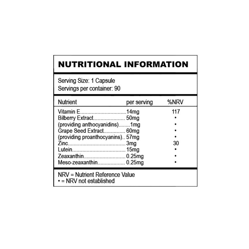 A Full Spectrum Eye Health Multi, Synergistic essentials in food state form. This supplement is created with Marigold Extract to naturally provide the 3 vision health-boosting carotenoids: Lutein, Meso Zeaxanthin and Zeaxanthin. With 50mg of Bilberry Extract and 60mg of Grape Seed Extract per 1 capsule for Anthocyanidins (Plant pigments found in high concentrations in purple-coloured fruits like blueberries, blackberries and Proanthocyanidins (A class of polyphenols). Vitamin E contributes cell protection from oxidative stress, Lutein’s role in the complex is to offer UV damage protection to the retina by the filtration of blue light. The food state Zinc contributes to maintenance of vision. The Zeaxanthin, Meso-zeaxanthin and again the Lutein are yellow pigments found in many vegetables and fruits. The macular (centre) in the retina of the eye is made up almost entirely of lutein, zeaxanthin and meso-zeaxanthin (these are macular pigments). This Eye Health Complex is Food-Based "Bio-available" which means when you take it your body will recognise and absorb it like food. So, this is a multi-vitamin and multi-mineral vision supplement, stored in a Miron Glass Jar.