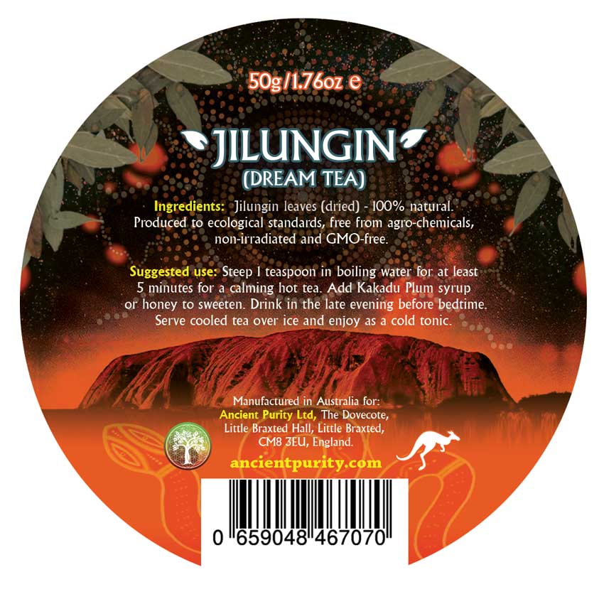 A: It is wild crafted Jilungin Dream Tea is harvested by the Nyul Nyul people, who are the custodians of the land where Jilungin grows. It is traditionally consumed at evening time, Jilungin Dreaming Tea has a relaxing effect and helps send you off to sleep. After a cup or two of this you're likely to sleep deeply...and have a few interesting dreams while you're at it!