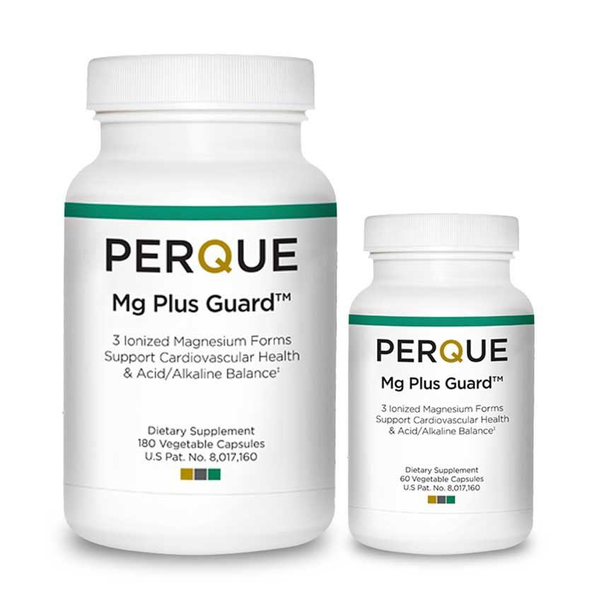 This Clean, Safe and Effective Supplement from Perque provides magnesium in fully soluble and fully ionised alkaline salts. It will make our bodies ready to combat acidity’s malicious effects. Mg Plus Guard™ guarantees full absorption and supports heart, bone, muscles, sleep, stress resilience, blood pressure, cell energy production and nerve health. Sufficient Magnesium levels block calcium depletion in your body and bones. Chronically low levels of Magnesium can increase the risk of high blood pressure, heart issues, type 2 diabetes and osteoporosis. It is also ideal for athletes as research shows that magnesium aids neutralise the pain-generating lactic acid during physical exercise. Promotes optimal blood pressure and blood sugar levels, safeguarding against calcium depletion in both bones and the body. Enhances cardiovascular and blood vessel health, boosts cellular energy production, resilience to stress, and facilitates restorative sleep. In some cases of deficiency, relying solely on magnesium might not suffice to alleviate symptoms. Magnesium is essential for the pathway that facilitates its own absorption, leading to a cyclic deficiency. Fortunately, the combination of Mg Plus Guard™ and Choline Citrate proves beneficial, enhancing uptake. By joining forces with magnesium and transporting it as a neutral compound, the combination effortlessly traverses cell membranes. This innovative supplement was design by Dr. Russell Jaffe. Formulated with 3 of the most bio-available Magnesium forms to enhance functional benefits!
