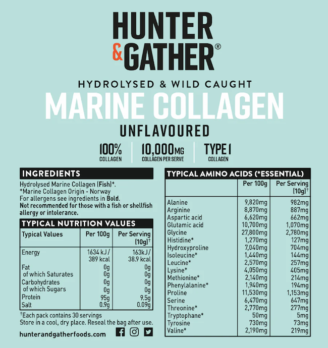 Sourced from wild-caught white fish in the pristine waters of Norway. This premium, high-quality Collagen is derived from nature’s finest marine life, offering a pure, single-ingredient formula that is completely unflavoured for easy blending. Marine Collagen helps restore this vital protein, boosting skin hydration and improving its overall appearance. Regular use can visibly reduce the appearance of fine lines and wrinkles, making your skin look smoother and more supple. Its rich amino acid profile strengthens hair follicles, promoting healthier, shinier hair and helping to reduce hair thinning. It also supports nail health by encouraging stronger, less brittle nails, making it an essential part of any beauty regimen. It supports the health of joints and bones, providing vital nutrients that maintain flexibility and mobility as you get older. Whether you're looking to improve skin elasticity, enhance joint function, or support muscle recovery. Sourced from the deep, cold waters of Norway, with its untouched coastal waters and strict environmental regulations, provides the perfect environment for sourcing clean, sustainable marine collagen. The country's commitment to preserving its natural resources ensures that the collagen we offer is of the highest purity and quality. Free from artificial additives, preservatives, and fillers. By choosing Norwegian-sourced marine collagen, you are opting for a product that is not only beneficial for your skin, hair, and joints but is also sustainably sourced, ethically produced, and clean.