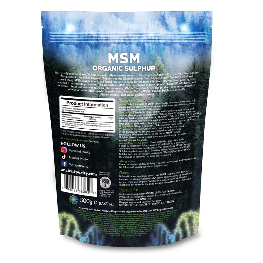 Ancient Purity MSM Organic Sulphur 99% Pure | Cellular Oxygenation, Detox, Skin, Joints & Longevity