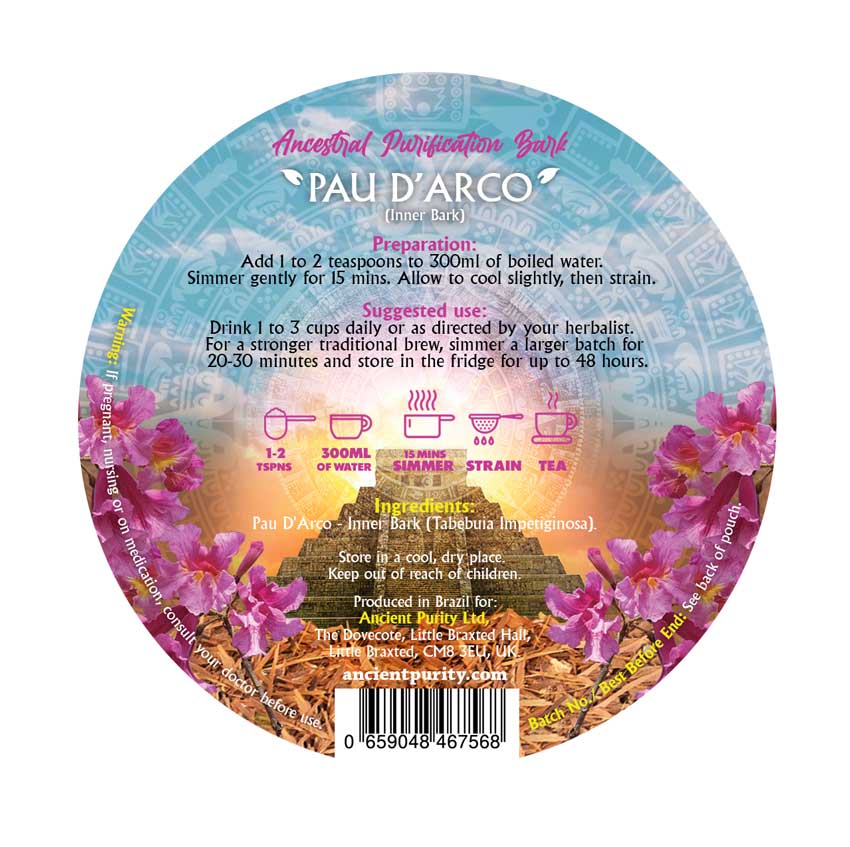 Ancient Purity Pau d’Arco is offered in its most authentic form, the whole inner bark, allowing you to prepare it slowly and intentionally as a loose tea. This method preserves the full spectrum of plant compounds and honours the way Pau d’Arco has always been used. Each cup connects you back to ancient rainforest wisdom, supporting immunity, purification and deep cellular renewal through one of nature’s most powerful herbal allies.