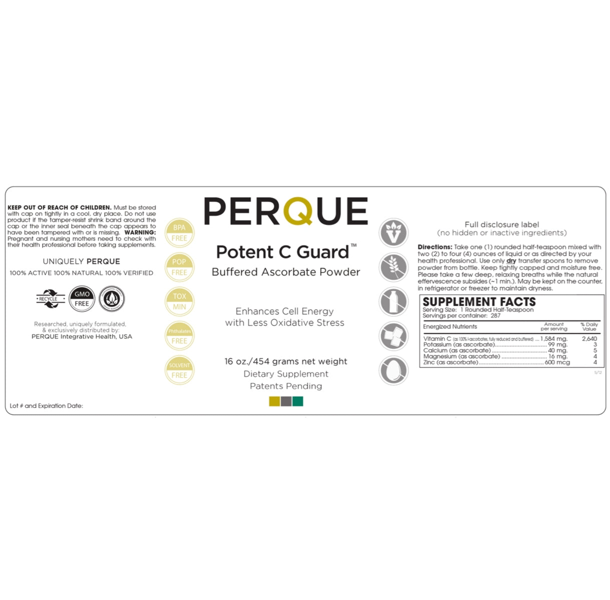 This is Perque’s Potent C Guard, buffered and reduced 100 L-Ascorbate. A Super Clean, Effective Supplement created by Dr Russell Jaffe works hard, fast and persistently in the human body, supplying adequate ascorbate to the cells. Supported by multiple scientific studies, it is one of the most potent Vitamin C supplements available! This is a powerful and personalised antioxidant protection supplement. You can significantly reduce tissue damage with this fully buffered and reduced 100% L-ascorbate. Potent C Guard is a pH-balanced‚ corn free, allergen-free‚ vegetarian and completely buffered mineral ascorbate (Vitamin C). Triple recrystallised under nitrogen to enhance potency! L-ascorbate was shown most effective form of Vitamin C in 6 peer reviewed outcome studies. It has over 300 Peer-Reviewed Studies. Perque Potent C Powder works harder, quickly and persistently in the body and contains a balance of Essential Minerals: Calcium, Magnesium, Potassium, and Zinc. Potent C Guard prevents free radicals from harming the ascorbate. The cofactors, metabolites, and transporters in Perque Potent C Guard powerfully enhance absorption and tissue action. It is free of the side effects associated with other vitamin C supplements, has a full disclosure label (no hidden ingredients) and is effervescent and neutral tasting formulation. It supports Immunity, Collagen repair and formation, Joint function, Energy production, Antioxidant protection and function, Detoxification, and more. This Vitamin C is effervescent and has a good/neutral taste, making it safe and easy for daily use.
