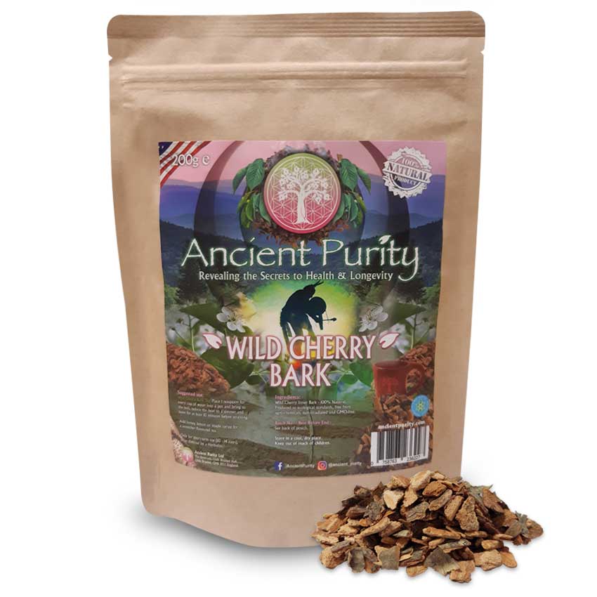 NOTE: Wild Cherry Bark is used to make medicine. Wild Cherry is used for colds, whooping cough, bronchitis and other lung problems; diarrhoea; gout; digestive disorders; and aches pain. It is also used in cough syrups because of its sedative, expectorant, drying, and cough-suppressing effects. Be sure to follow relevant directions on product labels and consult your pharmacist or physician or other healthcare professional before using